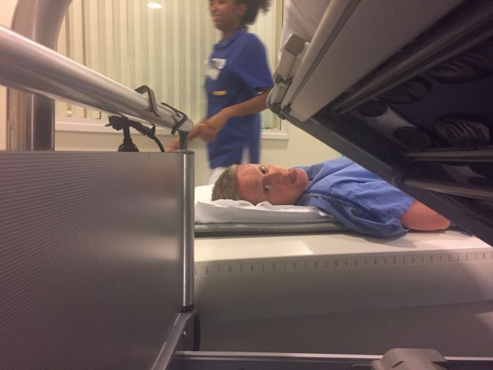 Before long, it’s time to go back downstairs for my second round of scans. This time I’m going down on a bed, so I can go straight into surgery afterwards. OK now this is starting to get serious.
