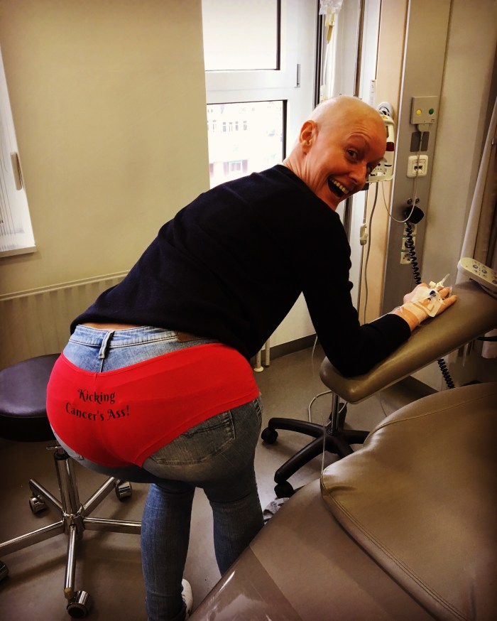 Then came a lifeline. My best friend Alex had been planning the party of the century – she’s a party planner by profession, but this was her own 40th birthday party so it promised to be epic! I’d said from the start that I was unlikely to be able to go because I’d be in between chemo sessions. Al understood totally and kept me involved as the plans evolved, so at least I still felt part of it, but I was gutted that I couldn’t go, as it was my best mate’s big weekend and I wanted to be there for her. But on the Wednesday it suddenly dawned on me that, as I hadn’t had chemo on the Monday, maybe I could actually go?! I could get the overnight ferry (no way I could fly), sleep in my cabin all the way there and back, and travel by car (so avoiding public transport)! OK I couldn’t go to the party, but I knew Al was having her nails done in north London in the morning, so I could just turn up at the salon and surprise her, sit and shoot the breeze while she got pampered, then head back to the ferry afterward! It was only an hour’s drive each way, a good sleep in between, no risk of infection, and I’d get to see my best mate on her birthday! So I bought the ferry tickets and suddenly I had something good on the horizon!